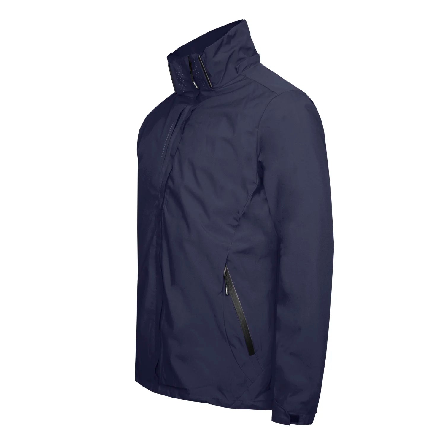 - Capa Externa (Cortaviento Impermeable): Confeccionada en poliéster duradero, protege del viento y lluvia ligera (3.000mm). Cuenta con forro transpirable, capucha ajustable/desmontable, 4 bolsillos (incluyendo pecho e interno) y ajustes precisos en puños (velcro) y pretina.